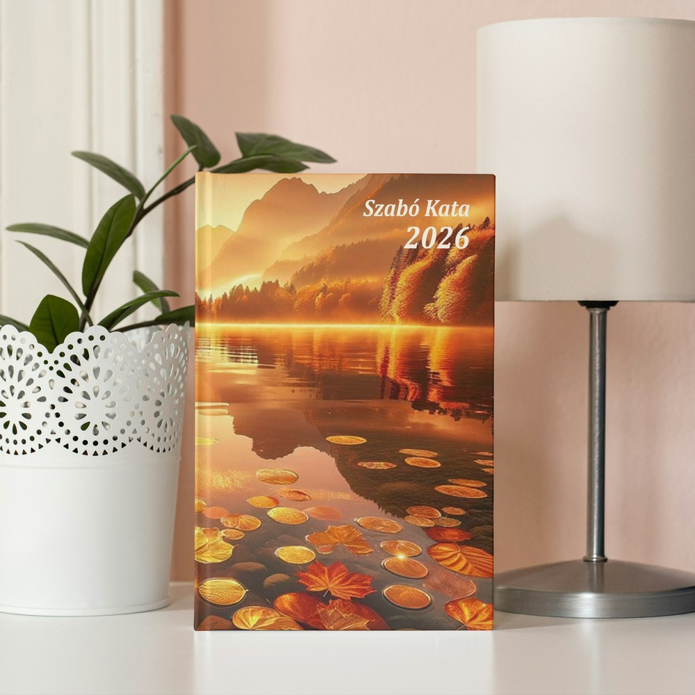 Őszi sablon | Egyedi névvel 2026-os keménytáblás határidőnapló A/5 napi beosztású